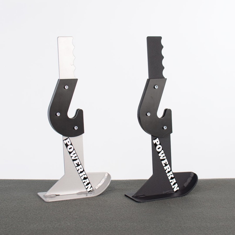 Con una altura de 46 cm y anchura de 20 cm, el elevador de barra de PowerKan te facilita quitar, cambiar o añadir peso a la barra con un solo movimiento. Cuenta con una pieza para proteger la barra.