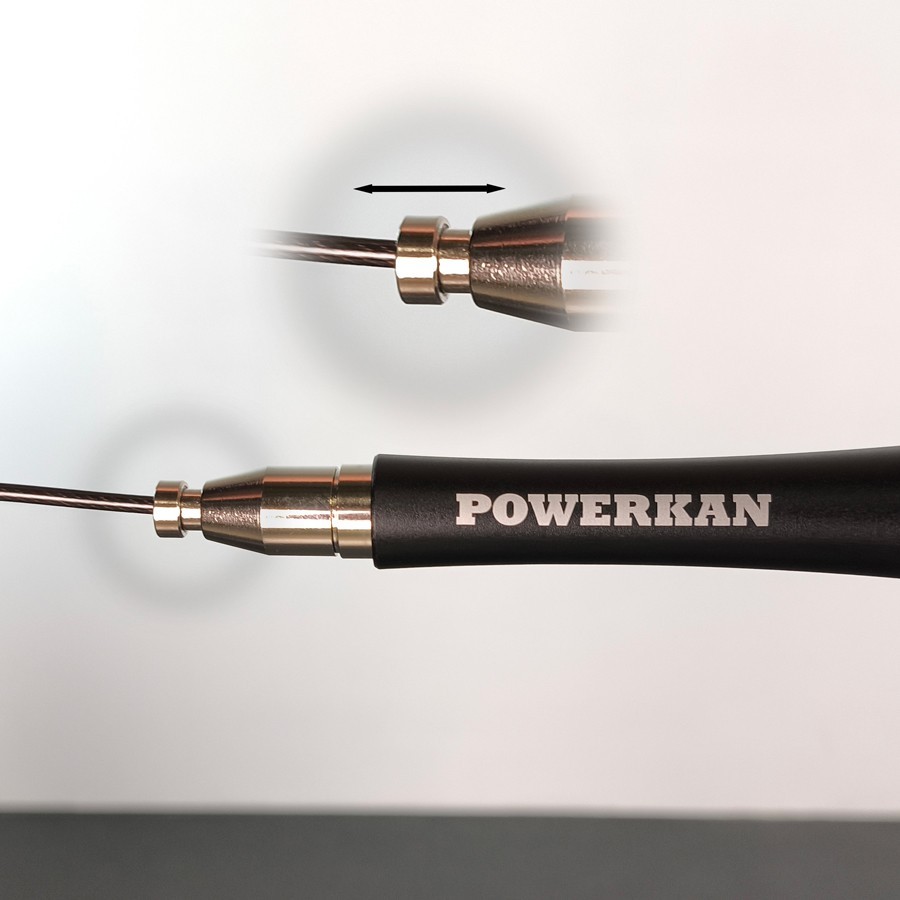 Comba de aluminio regulable de PowerKan. Comba profesional con mango de aluminio negro con goma, ajuste rápido por presión y rodamientos de alta velocidad. Ideal para entrenamiento funcional.