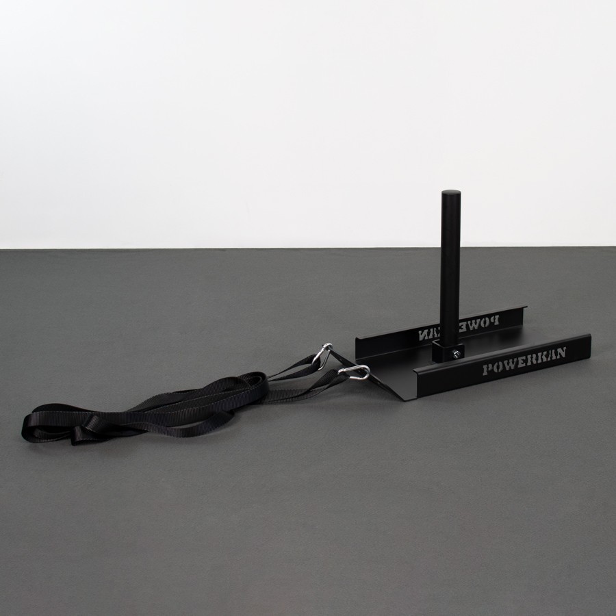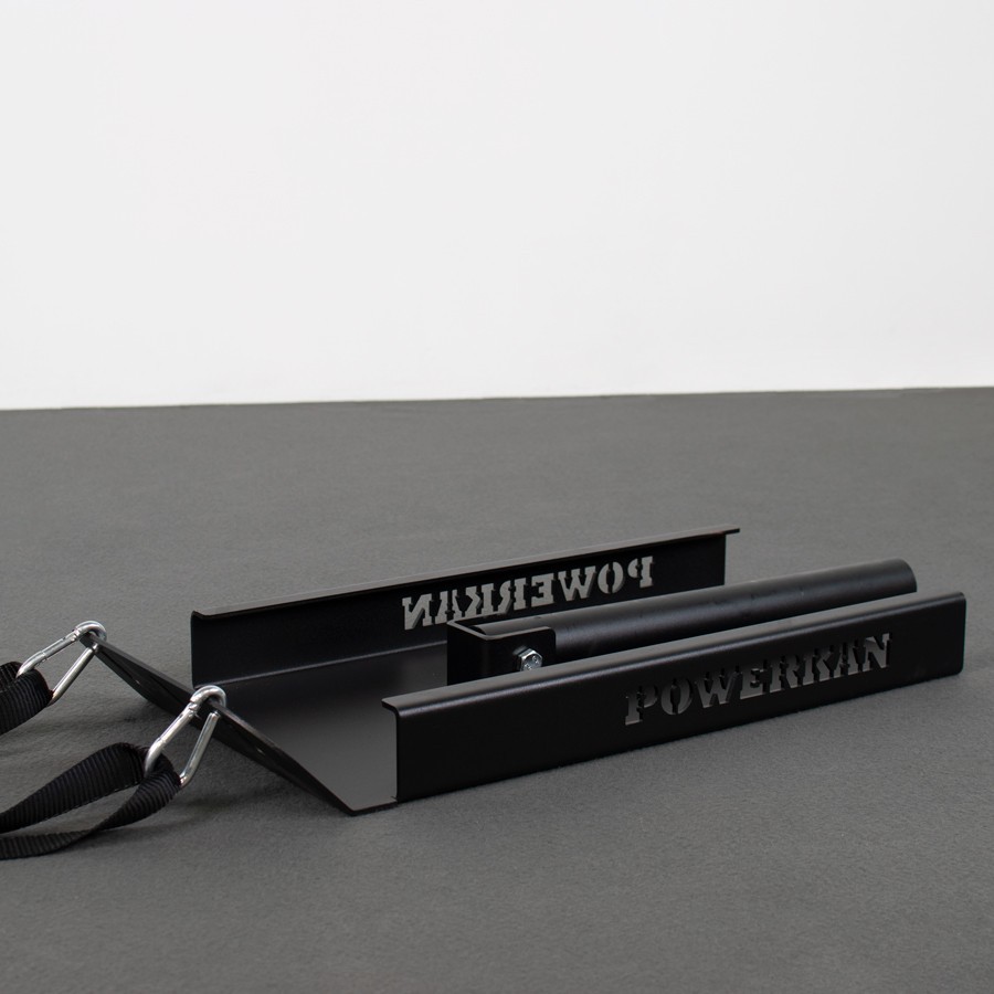 Trineo mini PowerKan, fabricado en chapa de 4 mm, con un plegado lateral que refuerza el producto y afianza su durabilidad, con barra de carga abatible.